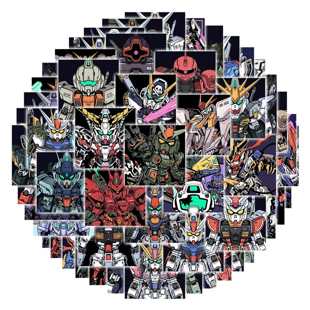 Premium Gundam sticker collection featuring iconic mobile suits from Gundam SEED, F91, 00, Wing, Z, and V series. Available in 10, 30, or 63-piece sets, these high-quality vinyl decals are perfect for personalizing laptops, skateboards, water bottles, notebooks, and more. Cool anime stickers for Gundam fans and mecha enthusiasts.